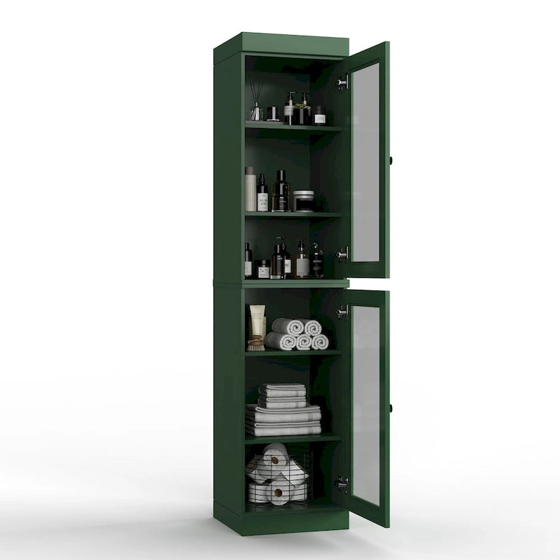 Upgrade your bathroom with our 16.5 wide cabinet, crafted from 100% solid wood in Brazil. This beautifully designed piece provides versatile storage and display options with adjustable shelves to accommodate items of all sizes. Choose between clear glass doors to showcase your collection, frosted glass for a sleek, contemporary look, or solid wood doors for discreet storage. Enhance your bathroom's style and functionality with this elegant and durable cabinet.