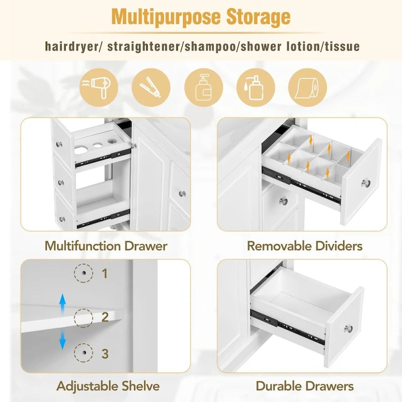Multipurpose Storage: The cabinet offers versatile storage options, including dedicated space for your hairdryer, straightener, and other grooming tools.