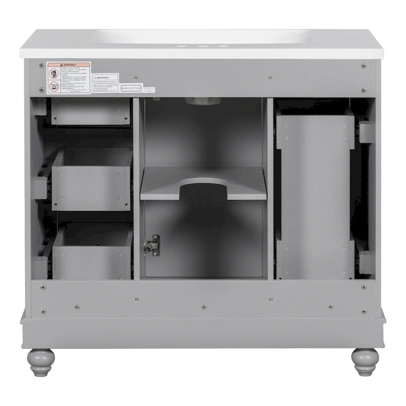 36 Inch Bathroom Vanity Cabinet with Resin Sink and Adjustable Shelves
