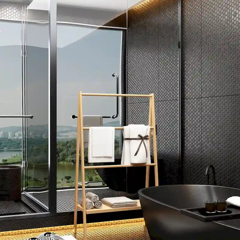 Bamboo Ladder Towel Rack with Storage Shelf