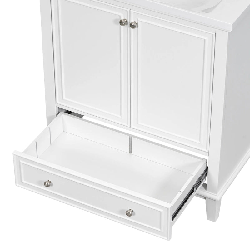 Assembly Required: This bathroom vanity needs assembly. All the hardware(screws, metal door hinges and handles, drawer slides, anti-toppling device etc.) and instruction manual are provided. You can install it according to the instruction easily.
