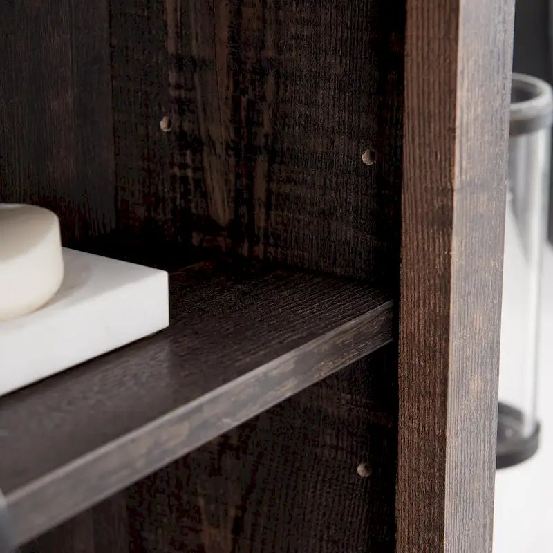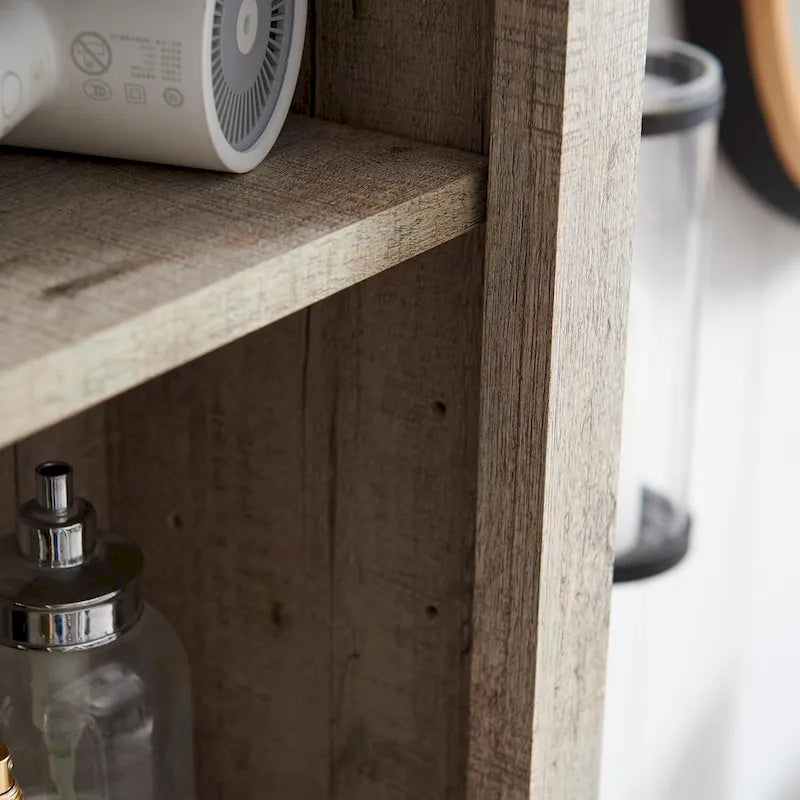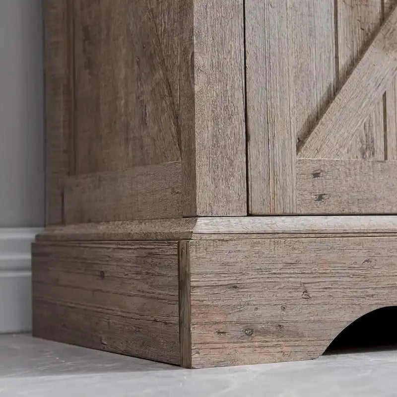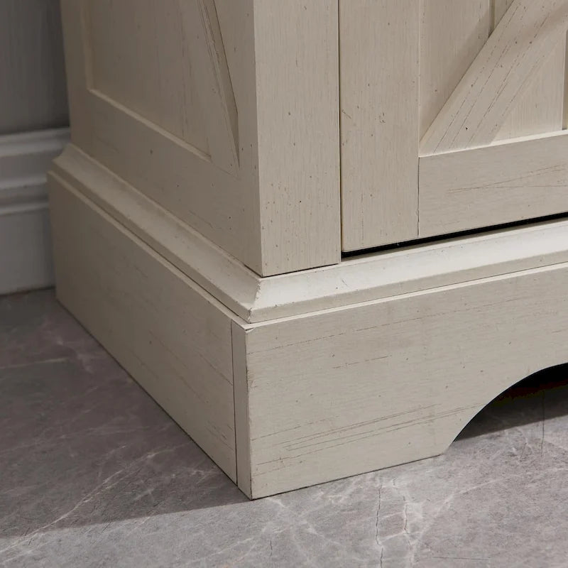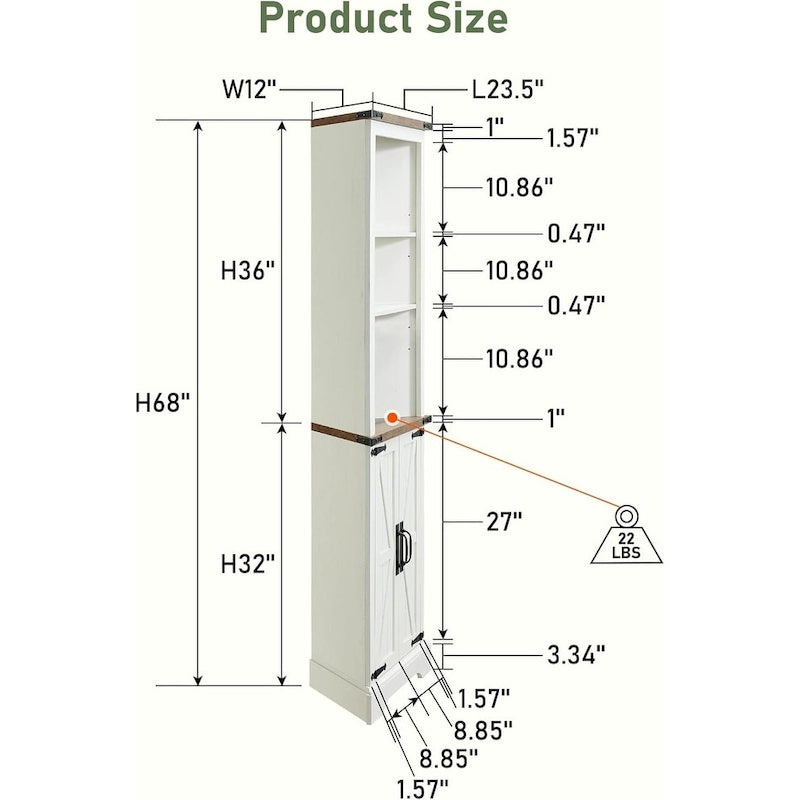 It shows a gorgeous barn door design, combining modern and rustic elements for an elegant look for ideal use for the bathroom, also complements any furniture decor in your house. 68 inch tall corner cabinet has 3 open cubbys and 1 closed cabinet with double doors. All shelves could be adjusted to different heights for any items. With a thick pedestal base offering sturdy support, there is also anti-tipping devices on the top securely fasten the cabinet to wall, preventing wobbling or tipping over. With waterproof and rust-proof material, the linen tower is easy to clean. Stainless steel handle and magnetic door provide more convenience, ideal for the living room, kitchen, bathroom.