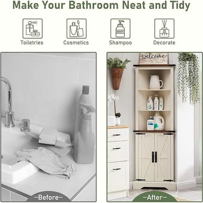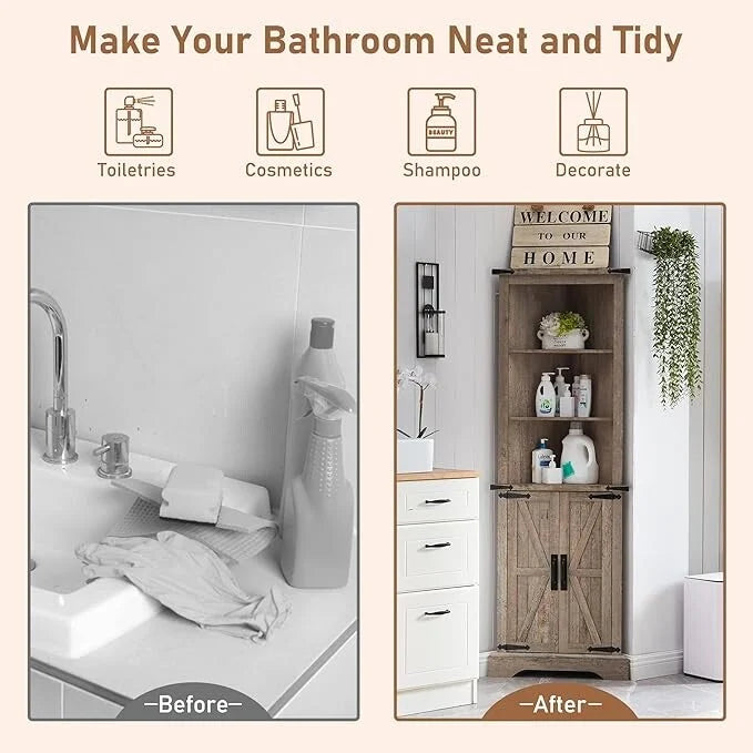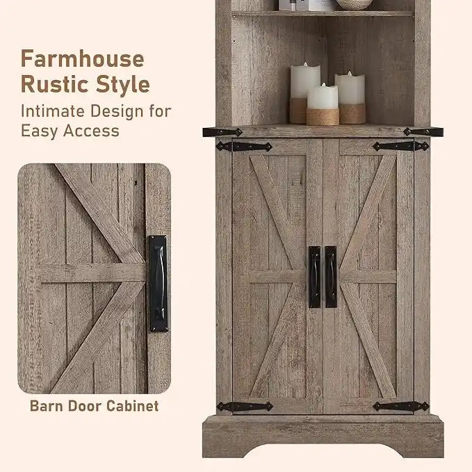 Farmhouse Tall Corner Cabinet, Storage Cabinet, Home Space Saver