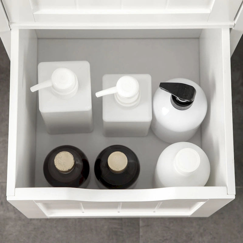 Organize your bathroom essentials in style with the kleankin Narrow Bathroom Cabinet. Its vintage design seamlessly complements any room decor, while the sturdy MDF construction provides durability. The slim and tall design fits perfectly in narrow spaces, and the 3 drawers and 2 open shelves offer ample storage space. With an anti-tipping design, it's safe to use in shared households.