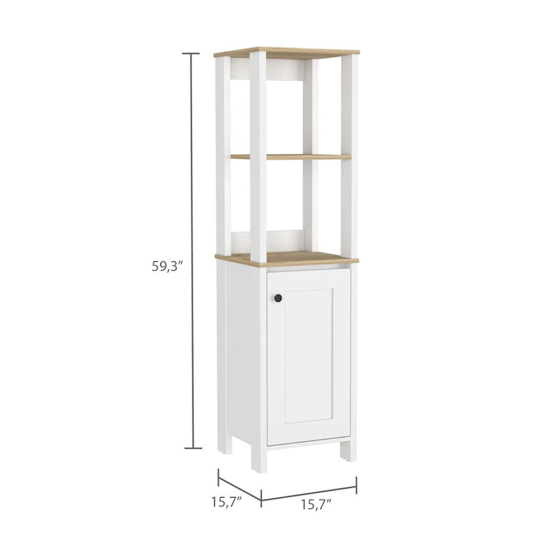 Linen Cabinet Jannes, Two Open Shelves, Single Door, Light Oak / White Finish