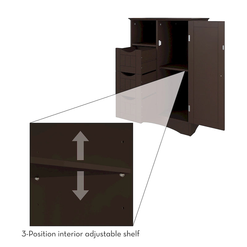 RiverRidge Ashland Single Door Bathroom and Laundry Storage Cabinet with 3 Drawers, Open and Adjustable Shelf