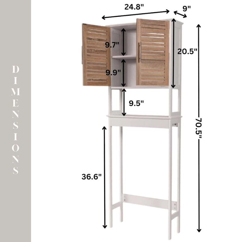- SPACE-SAVING DESIGN: Utilizes the space above the toilet, maximizing bathroom storage without occupying floor space. Dimensions: 70.5 H x 24.8 L x 9 W
