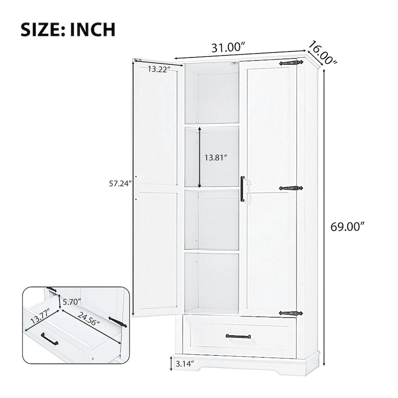 - Ample Storage: Upper enclosed cabinet with doors has four tiers to accommodate decorations or articles for daily use. As for lower part, there are one big drawer to provide more storage space.You can put stuff in it, such as shampoo, towel, body lotion, tissues and storage basket etc..