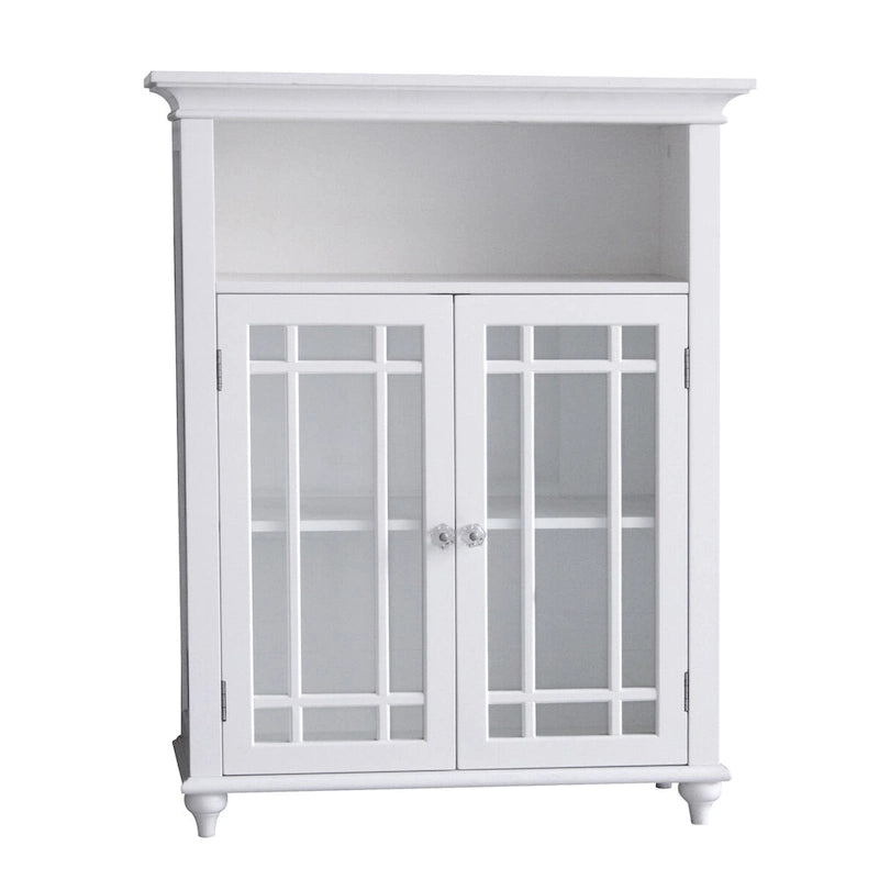Teamson Home Neal Wooden Freestanding Two-Door Floor Cabinet with Glass Paneled Doors and Open Fixed Shelf