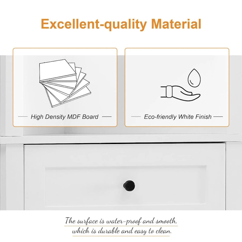 Wide Application: This tall corner cabinet, placed in the corner, does not take up space. It is suitable for limited spaces, such as bathroom, kitchen, dining room, living room, and anywhere you want. What's more, the whole white body will fit any decoration style. It could add more sleek elements to your home.
