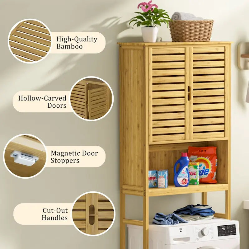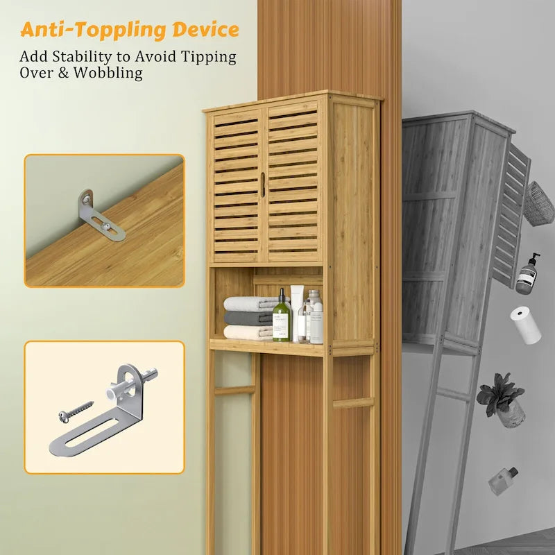 VEIKOUS Bamboo Over The Toilet Storage Cabinet Cupboard Bathroom Organizer with Adjustable Shelf and Double Doors